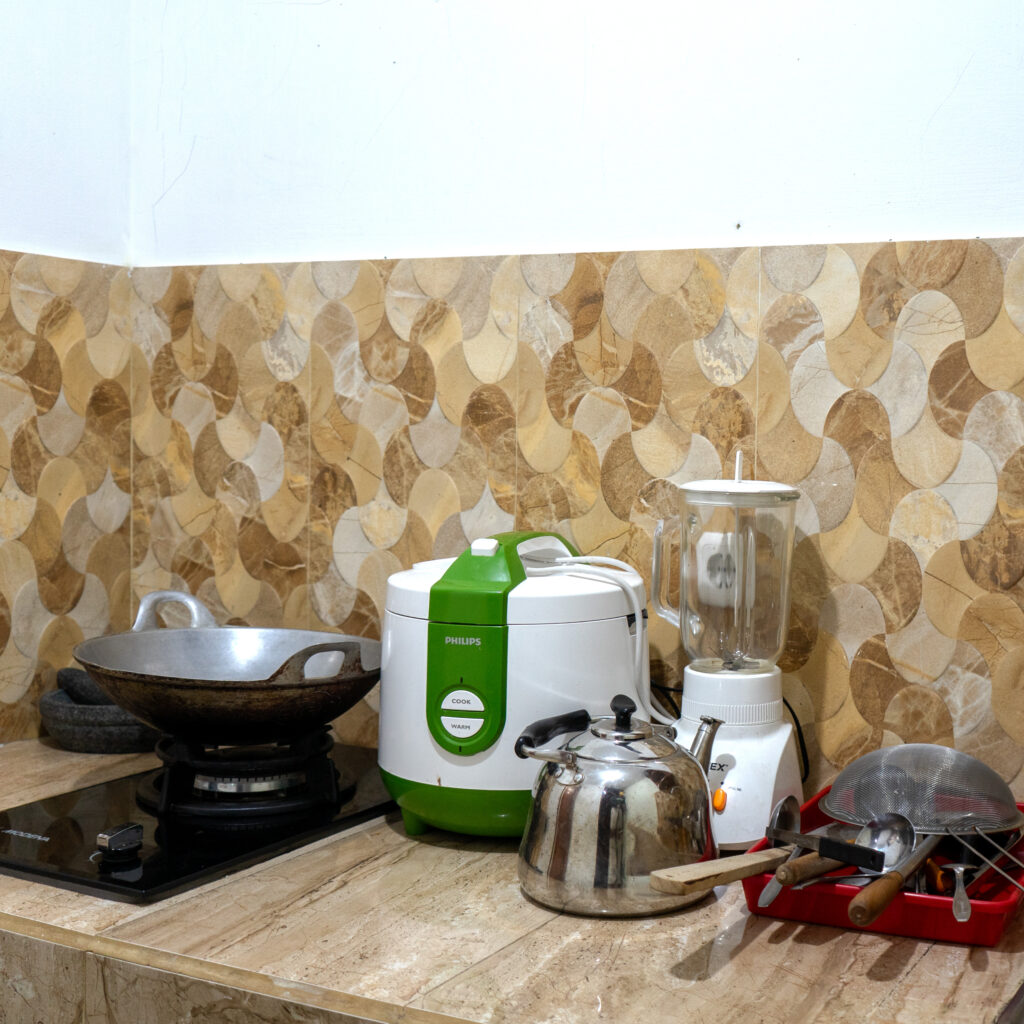 Dapur Lengkap, kompor, berbagai alat makan dan masak. Sarapan dan Kudapan.